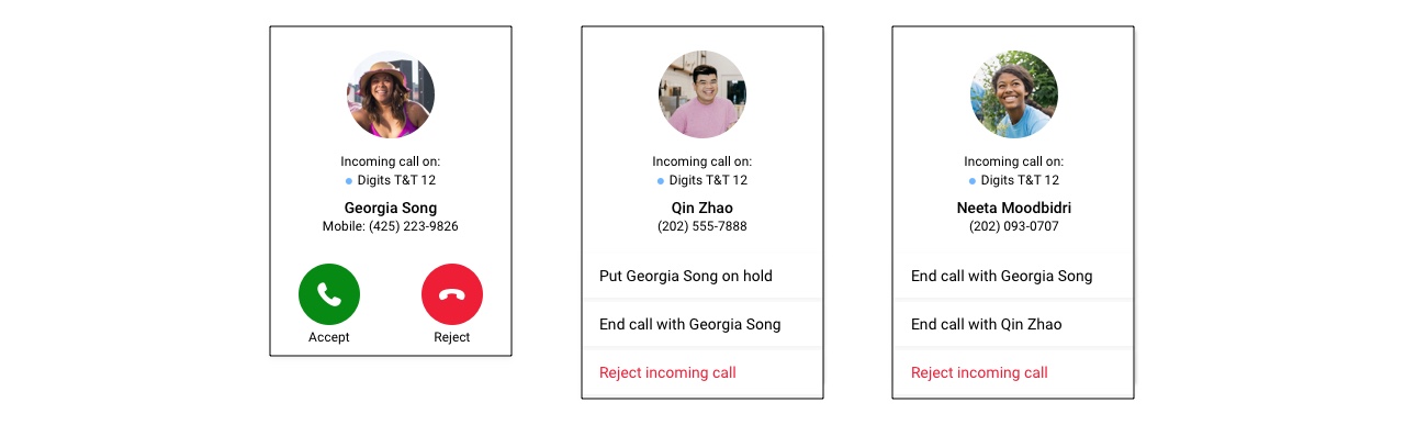 Users were experiencing friction in determining what to do with multiple call scenarios. Example: 1 Active call and a second Incoming Call; 1 Active call, a second call on hold, a third incoming call.