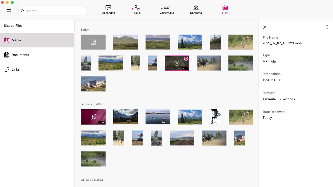 One of the other improvements to the messaging feature was considering how the user can manage their shared media. In the current version to find a file or image a user would have to scroll through their message history. It was cumbersome. The new media well experience was designed with three main features, but due to other priorities, only the first feature was developed and shipped.