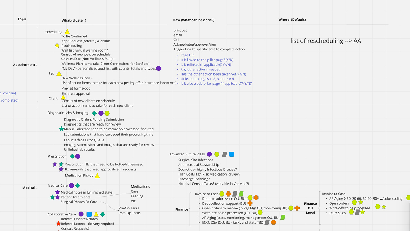 Observing and interviewing hospital staff on location to understand their duties and pain points across several different sized veterinarian hospital brands.