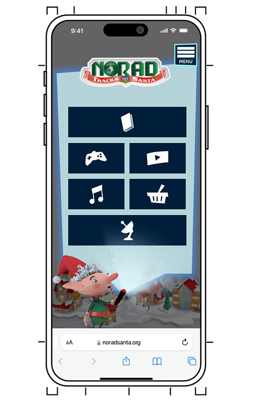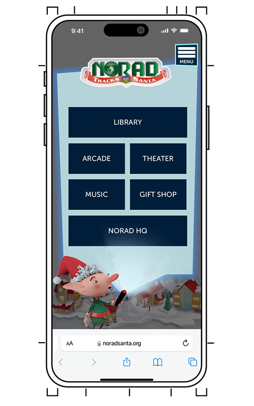 As time is always a challenge each year, we worked closely with NORAD and Bing to maximize value on the website by pitching our content and design ideas. In our pursuit to move the needle of engagement, a fast win was to add icon and images to every call to action and navigation item as shown in the Library and Headquarters screens.