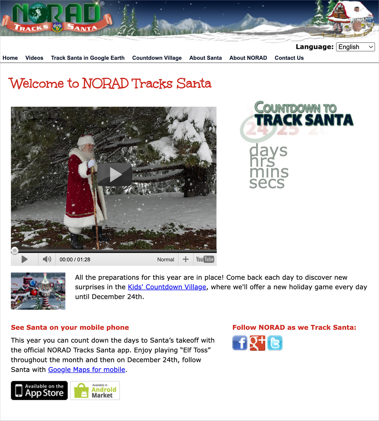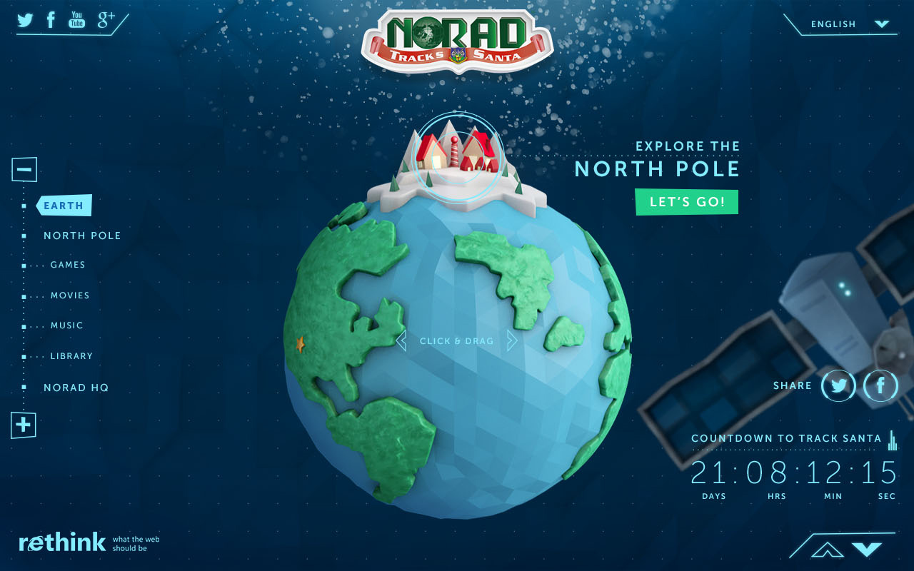 However, there was frustration with how to best achieve this goal of educating the public about NORAD’s purpose with the Santa Tracker. The existing website analytics and public feedback showed that the audience did not visit the website until 24 December and only a miniscule of users who visited explored the website beyond the “Track Santa..” link. Most people thought NORAD was just the mountain featured in War Games.