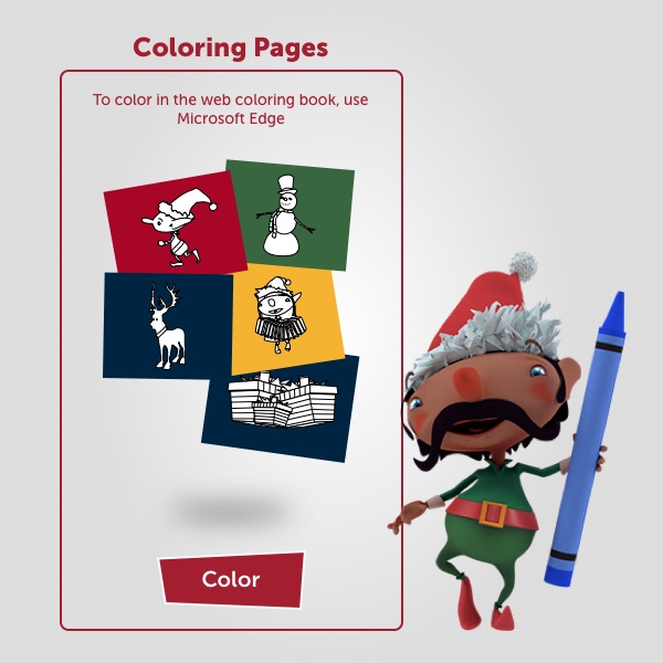 - the activities on the holiday activity page like the interactive coloring pages we created for Microsoft Edge users