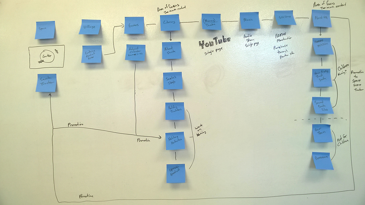 We also conducted usability testing on this new 3D and parallax based website design to gather feedback and test our design assumptions to make improvements for the next year. From a research session with regards to the 3D modeled fighter jets accompanying Santa, one child asked his guardian if we were going to shoot down Santa Claus?