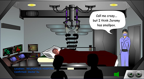 In addition to the illustration and design of the first two adventures “Nothing to Rave About” and “Medical Mysteries I was the primary animator and Flash developer and technical architect.