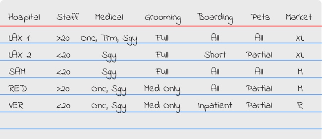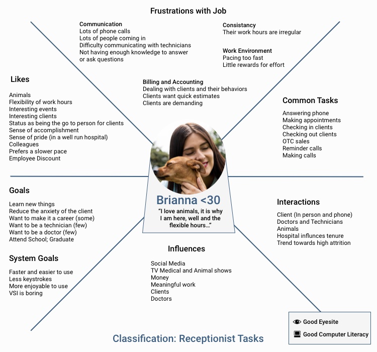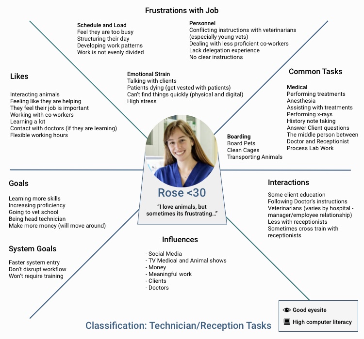 Observing and interviewing hospital staff on location to understand their duties and pain points across several different sized veterinarian hospitals.