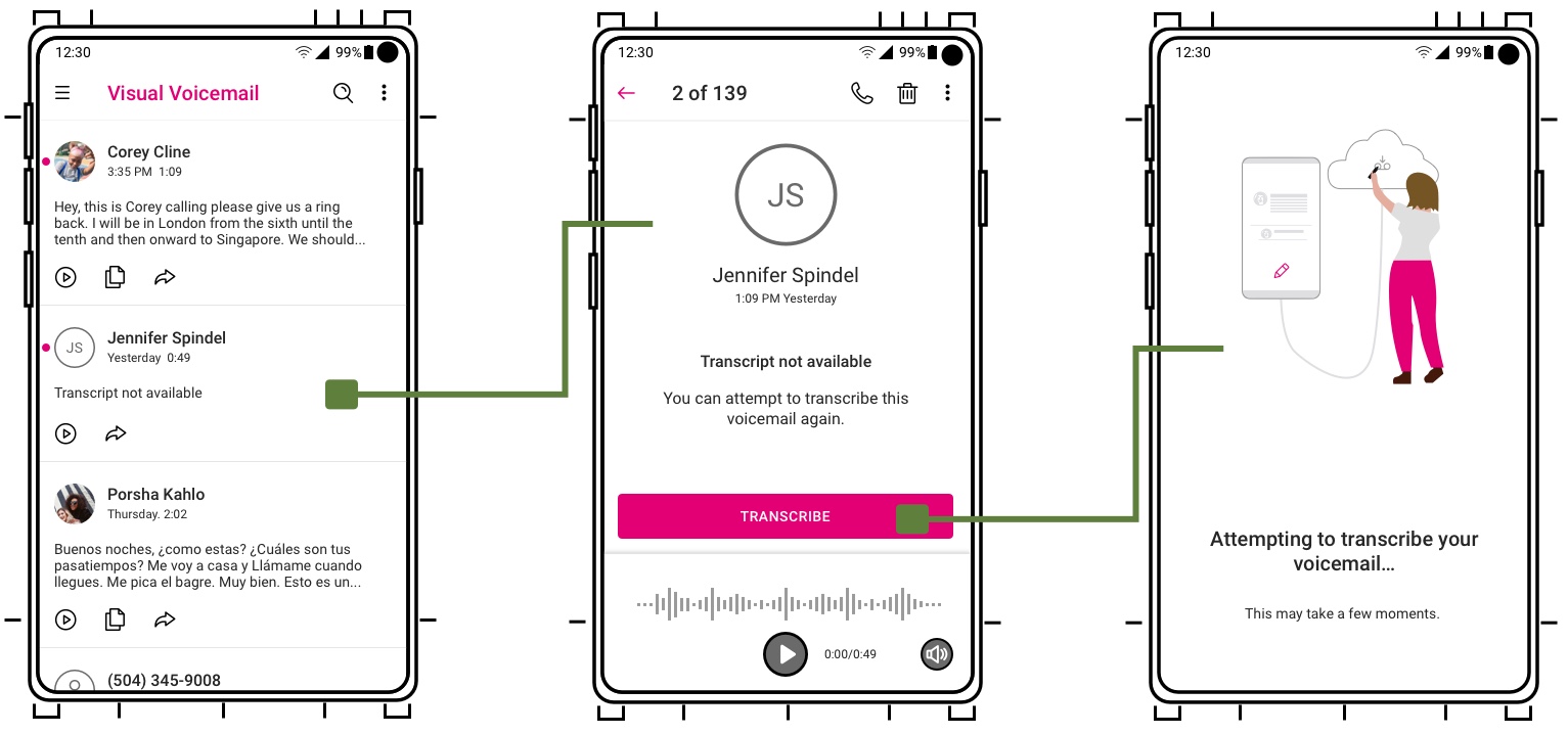 The second feature and one I advocated for was the ability to transcribe on demand if a voicemail failed to automatically transcribe the audio. This feature however was deprioritized to a future version as the developer cost was rather significant when measured against other priorities and our team resources.