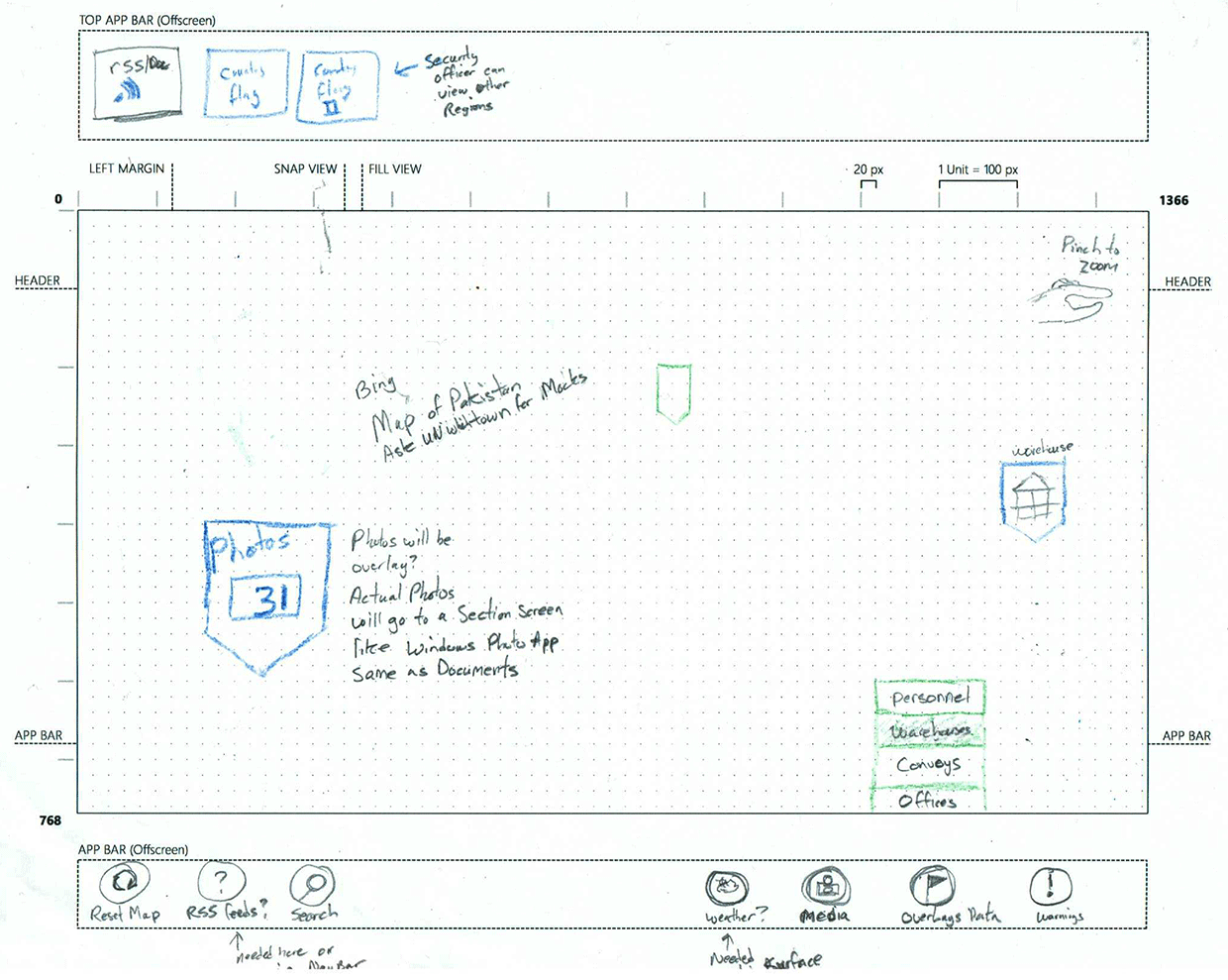Given the nature of the mission, there were several physical and security related challenges that the user experience and technical architecture needed to address. My colleagues and I teamed up with the UN, Microsoft, and former special services analysts to design and develop a situational awareness application that WFP security and logistical officers could use in the field.